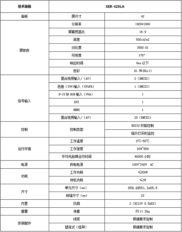 新視銳42寸窄邊22mm拼縫液晶拼接單元產(chǎn)品參數(shù):