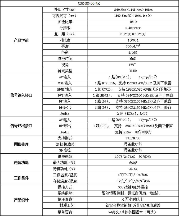 新視銳84寸4倍高清液晶顯示器性能參數