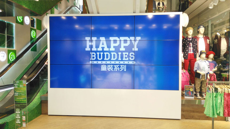 香港旺角新世紀廣場服裝店46寸超窄邊3X3大屏幕
