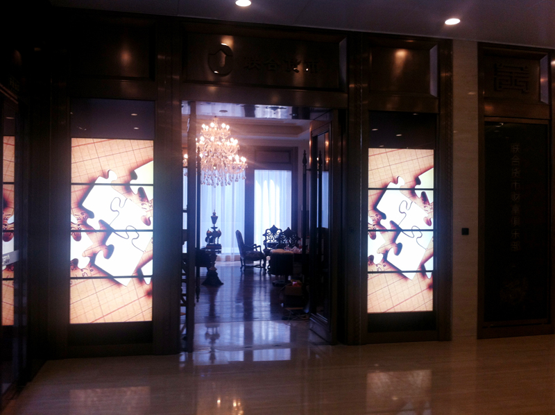 3.所有內(nèi)部設(shè)施安裝完畢后開始安裝顯示屏,由下往上安裝。