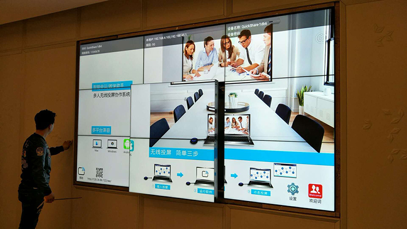 此工程所用材料由深圳市新視銳有限公司(m.qzgyp.com.cn)獨家承制,其中包括: 液壓式前維護壁掛架,1進16出高清HDMI分配器,一線品牌HDMI工程信號線材,控制線材,電源線,三星46寸超窄邊3.5mm拼縫液晶拼接單元,無線投屏系統組件等。